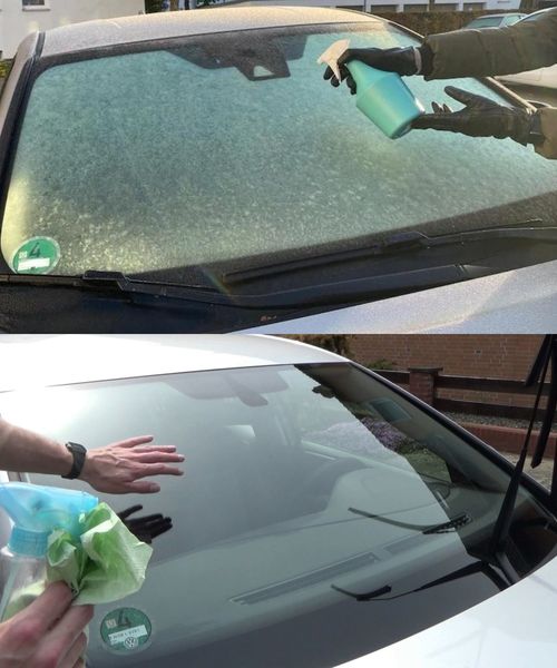 Sprühen Sie das Spray sowohl auf die Innenseite als auch auf die Außenseite der Windschutzscheibe.