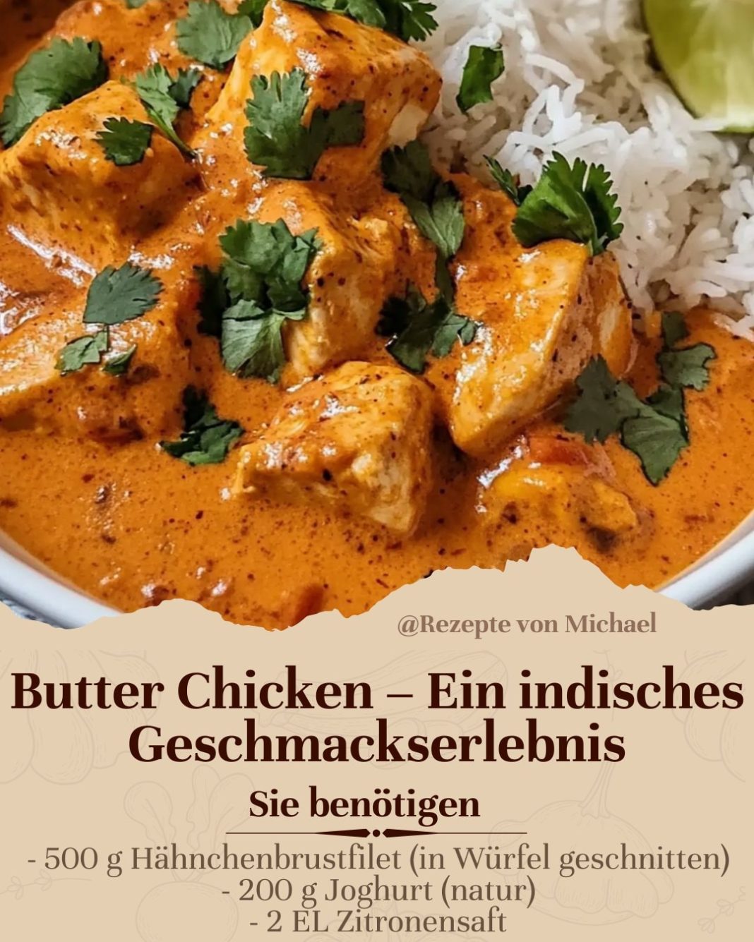 Butter Chicken, auch bekannt als Murgh Makhani, ist eines der beliebtesten Gerichte der indischen Küche weltweit. Seine Kombination aus zartem Hähnchen, aromatischen Gewürzen und cremiger Sauce macht es zu einem unverwechselbaren Geschmackserlebnis. Dieses Gericht ist nicht nur ein Fest für die Sinne, sondern auch relativ einfach zuzubereiten, wenn man die richtigen Schritte kennt. In diesem Artikel zeigen wir Ihnen, wie Sie ein köstliches Butter Chicken zu Hause zubereiten können – Schritt für Schritt und mit praktischen Tipps für das perfekte Ergebnis.