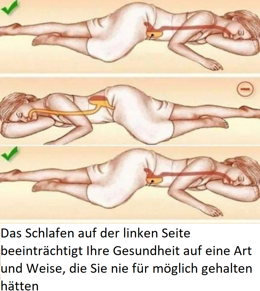 Im Gegensatz zum Schlaf auf dem Rücken oder Bauch kann die linke Seitenlage: