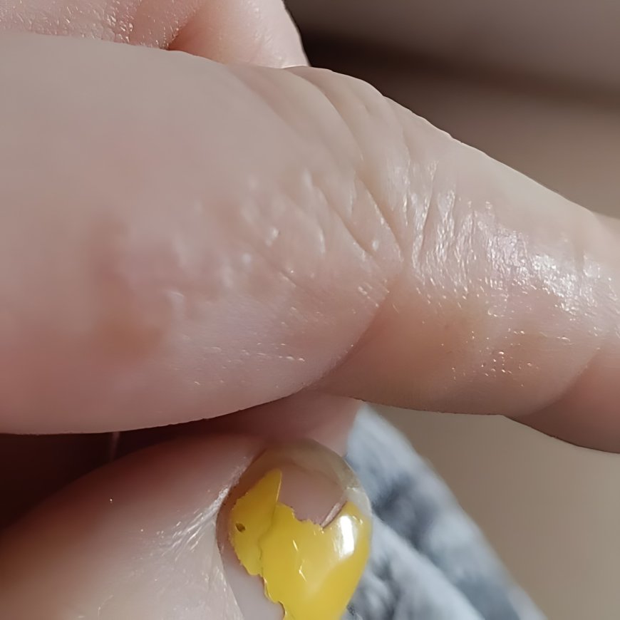 Erstes Auftreten kleiner, juckender Bläschen an den Fingerspitzen oder Innenflächen der Handinnenflächen.