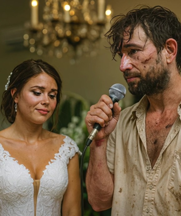 Er ging auf die Musiker zu und bat um das Mikrofon. Im Raum herrschte völlige Stille. Alle erwarteten eine Erklärung, und er sprach ruhig: „Ich bin nicht wegen des Essens oder des Geldes hier. Ich bin gekommen, um Danke zu sagen.“ Seine Worte hallten durch den Saal und zogen alle Aufmerksamkeit auf sich. Er begann, von seinem Leben zu erzählen, davon, wie er lange Zeit obdachlos gewesen war, ohne Hoffnung und menschliche Wärme. Er berichtete von Tagen auf der Straße, an denen er von allen vergessen war. Doch dann geschah eine Begegnung, die sein Schicksal veränderte – der Moment, als die Braut, damals noch ein Mädchen, auf ihn zuging, ihm Essen und Wasser anbot, aber auch etwas viel Wertvolleres: ein Gespräch.
