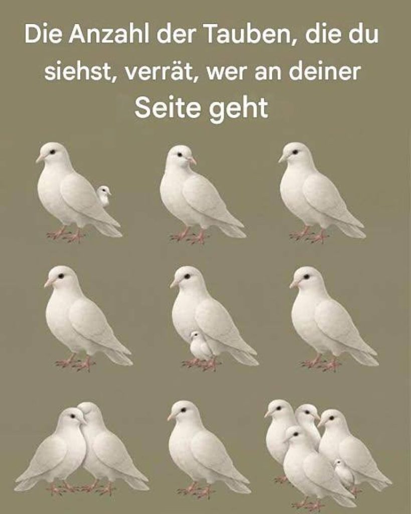 Wer zuerst zwei Tauben erkennt, richtet seine Aufmerksamkeit oft auf Beziehungen und emotionale Bindungen. Diese Wahrnehmung steht symbolisch für Nähe, Vertrauen und zwischenmenschliche Verbundenheit.
