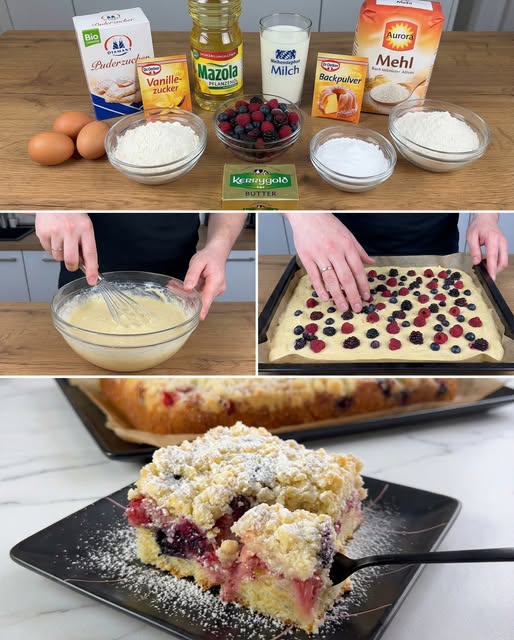 Ein selbstgebackener Kuchen gehört für viele Menschen zu den schönsten Momenten des Tages. Der Duft, der sich während des Backens im ganzen Haus verbreitet, weckt Erinnerungen an gemütliche Nachmittage, Familienbesuche oder entspannte Wochenenden. Besonders beliebt sind einfache Rezepte, die ohne komplizierte Techniken auskommen und trotzdem ein hervorragendes Ergebnis liefern. Genau dazu gehört auch dieser lockere Kuchen mit Waldbeeren und knusprigen Streuseln, der mit wenigen Zutaten zubereitet wird und durch seine Kombination aus luftigem Teig, fruchtiger Füllung und butterigem Streuselbelag überzeugt.