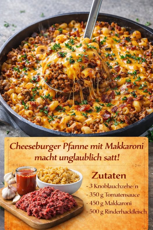Die cremigen Hackfleisch-Makkaroni mit Tomatensauce und Cheddar sind ein Gericht, das durch seine Einfachheit und seinen intensiven Geschmack überzeugt. Mit wenigen Zutaten, klaren Schritten und etwas Liebe zum Detail entsteht eine Mahlzeit, die sowohl im Alltag als auch bei spontanen Besuchen begeistert.