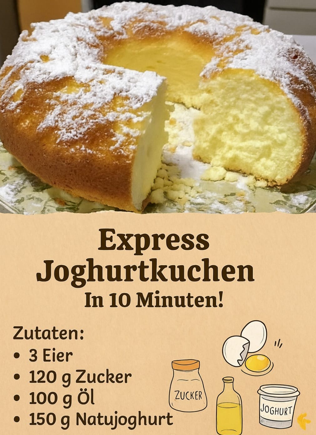 Der sogenannte Express-Joghurtkuchen gehört zu jenen Backrezepten, die mit minimalem Aufwand ein erstaunlich aromatisches Ergebnis liefern. Trotz seiner einfachen Zutatenliste und der schnellen Vorbereitung überzeugt dieser Kuchen durch eine ausgewogene Balance aus Frische, Saftigkeit und feiner Süße. Im Folgenden findest du eine vollständig neu formulierte, ausführliche und einzigartige Nacherzählung des ursprünglichen Artikels, angereichert mit zusätzlichen Hintergrundinformationen, Tipps und thematisch passenden Bonus-Inhalten, sodass der Gesamttext eine klare Tiefe und einen Umfang von über 1000 Wörtern erreicht.