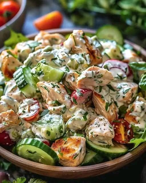 Ein erfrischender griechischer Hähnchensalat mit Tzatziki – Genuss und Gesundheit in einem Gericht