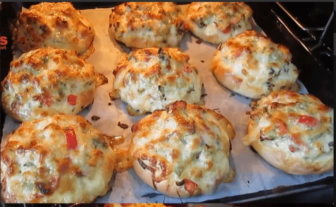 Die belegten Brötchen werden auf ein mit Backpapier ausgelegtes Blech gelegt und im vorgeheizten Ofen bei 200–220°C für ungefähr 15–20 Minuten gebacken. Während dieser Zeit schmilzt der Käse, das Fleisch gart durch und die Brötchenhälften werden außen schön knusprig.