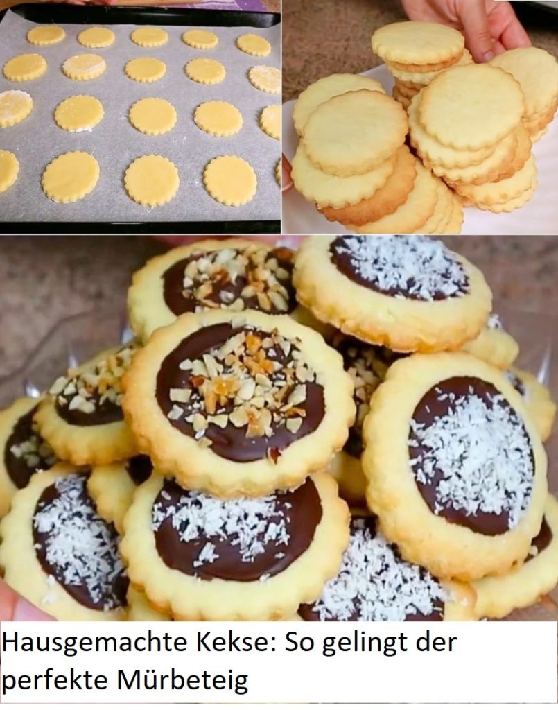 Die klassischen Butterkekse eignen sich hervorragend als Begleiter zu Kaffee oder Tee. Sie sind auch ideal als kleines, selbstgemachtes Geschenk – beispielsweise in einer dekorativen Dose. Besonders festlich wirken sie, wenn sie mit verschiedenen Toppings wie Kokosraspeln oder gehackten Nüssen versehen werden. Die Kombination aus knusprigem Keksboden und cremiger Schokolade ist ein zeitloser Genuss, der Jung und Alt begeistert.