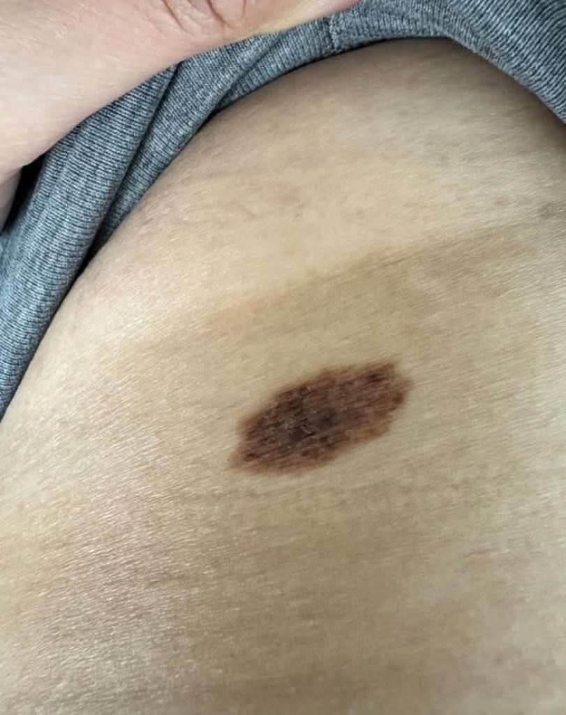 Ein Muttermal mit fleckigen, dunklen Stellen sollte stets mit Aufmerksamkeit betrachtet werden. Durch die Anwendung der ABCDE-Methode können Sie systematisch prüfen, ob ein Muttermal möglicherweise bedenklich ist. Die wichtigsten Punkte dabei sind: