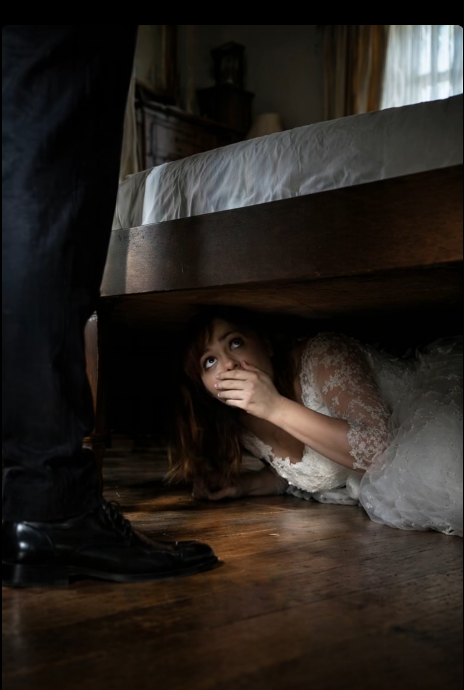 Unter dem Bett war es unangenehm eng, bei jeder Bewegung wirbelte Staub auf, und ihr weißes Hochzeitskleid war zerknittert und auf den kalten Boden gedrückt. Die Spitze blieb am Teppich hängen, und der Tüll verhedderte sich um ihre Beine. Trotzdem hielt sie durch, weil sie überzeugt war, dass ihr Moment perfekt sein würde.