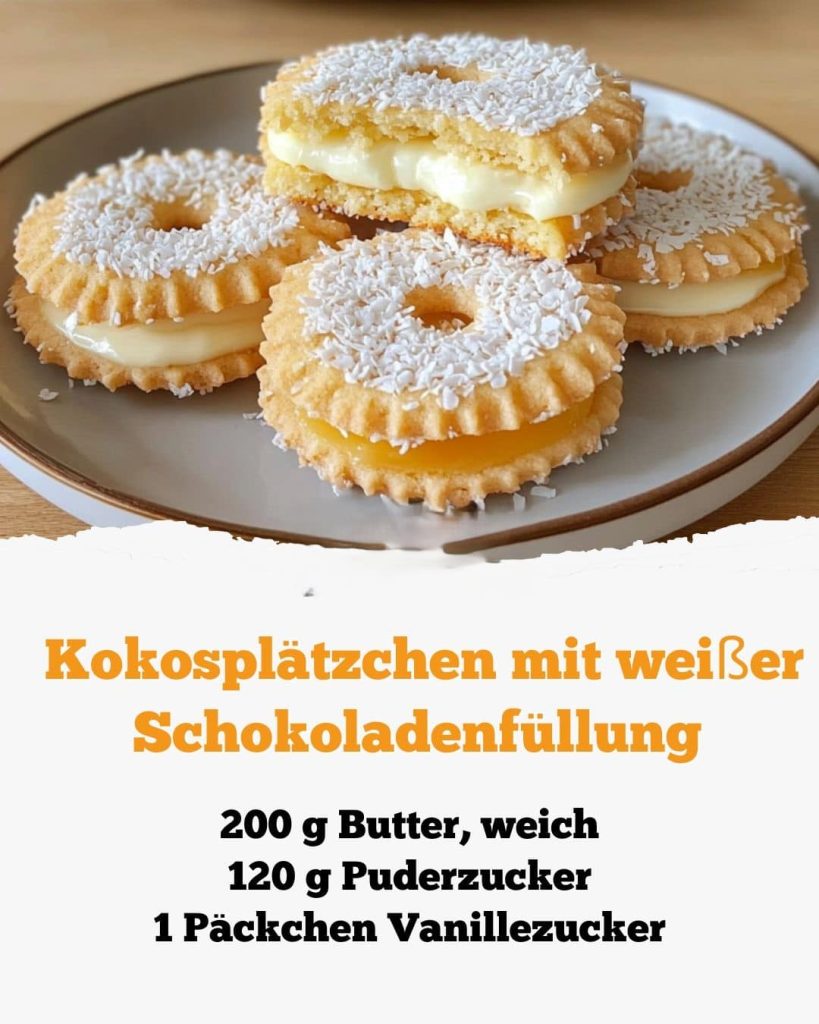 Kokosplätzchen mit weißer Schokoladenfüllung – ein zartes, cremiges und unwiderstehliches Vergnügen