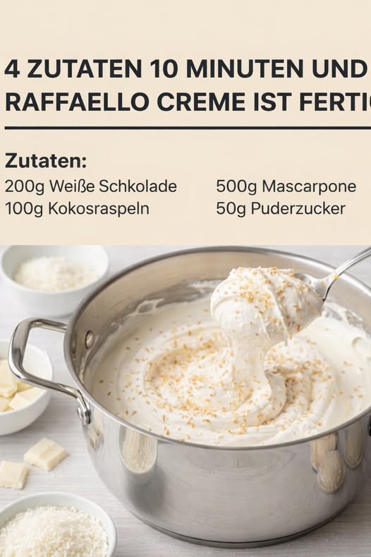 Die Kokos-Mascarpone-Creme mit weißer Schokolade ist ein perfektes Beispiel dafür, wie aus wenigen Zutaten ein außergewöhnliches Dessert entstehen kann.