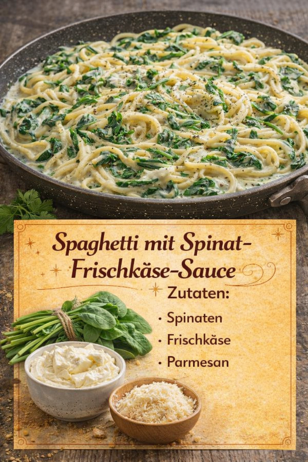 Der Spinat bringt nicht nur eine kräftige grüne Farbe ins Gericht, sondern auch wertvolle Nährstoffe. Sein leicht erdiger Geschmack bildet einen perfekten Kontrast zur cremigen Sauce.