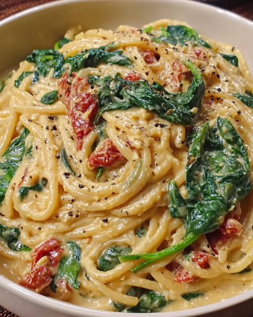 Spaghetti mit Spinat und cremiger Sauce aus getrockneten Tomaten sind ein hervorragendes Beispiel dafür, wie sich aus wenigen, gezielt ausgewählten Zutaten ein Gericht mit beeindruckender geschmacklicher Tiefe entwickeln lässt. Dieses Rezept verbindet Einfachheit mit Raffinesse und zeigt, dass man keine komplizierten Techniken benötigt, um ein rundum gelungenes Essen zu kreieren. Stattdessen stehen Qualität, Ausgewogenheit und ein gutes Verständnis für Zutaten im Mittelpunkt.