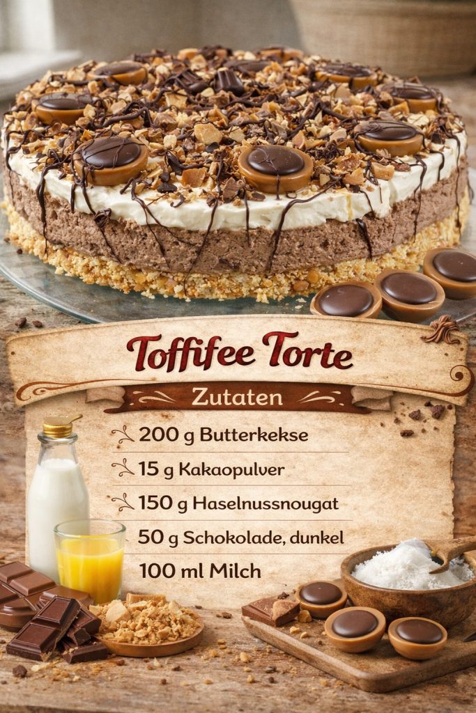 Die Dekoration ist nicht nur Schmuck, sondern ein integraler Bestandteil des Geschmacks. Toffifee, Haselnüsse und dunkle Schokolade sorgen für Struktur, Biss und ein intensives Finish.