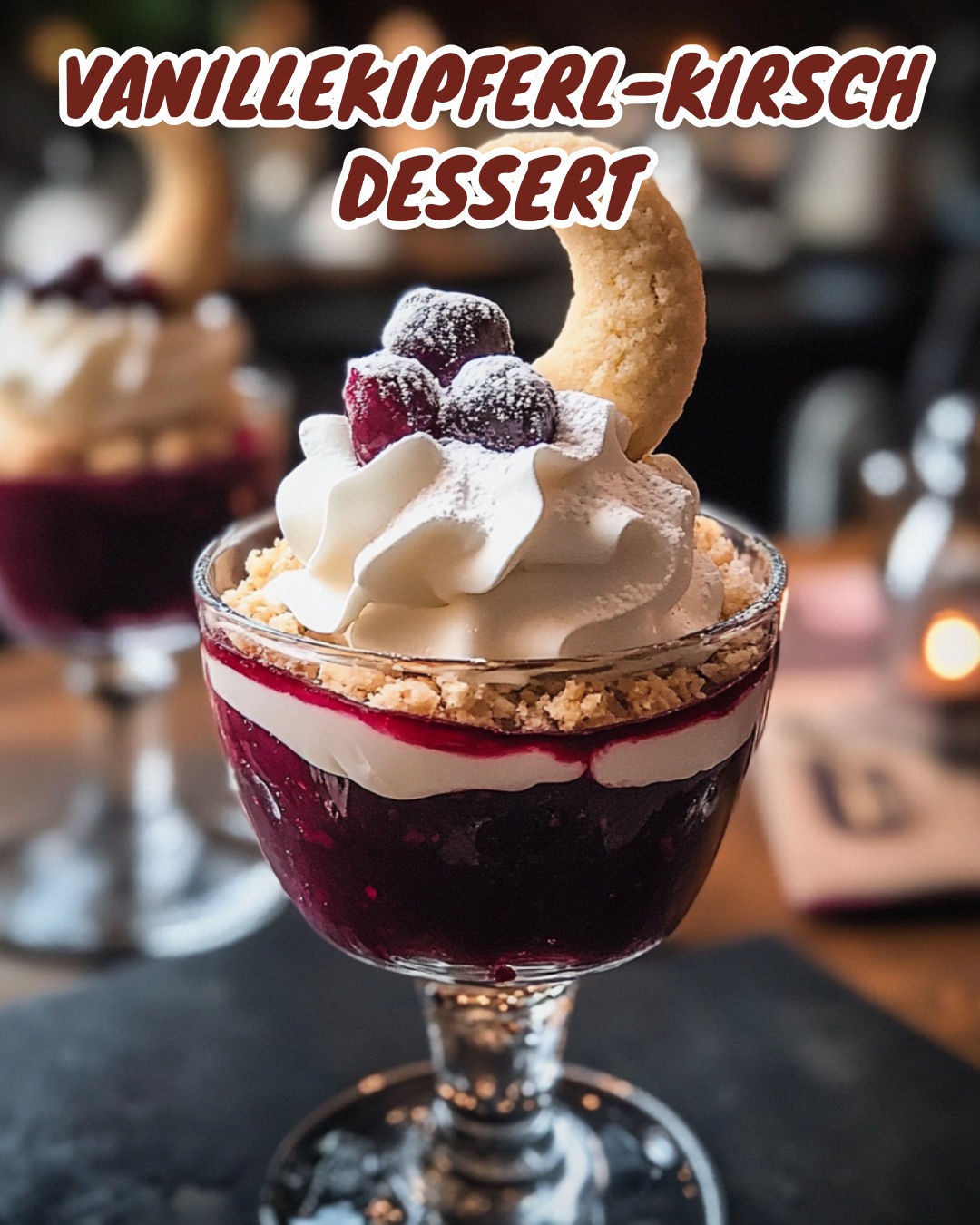 Dieses Dessert aus Vanillekipferl, Vanillecreme und Kirschkompott ist ein wahres Highlight für jeden Anlass. Es verbindet: