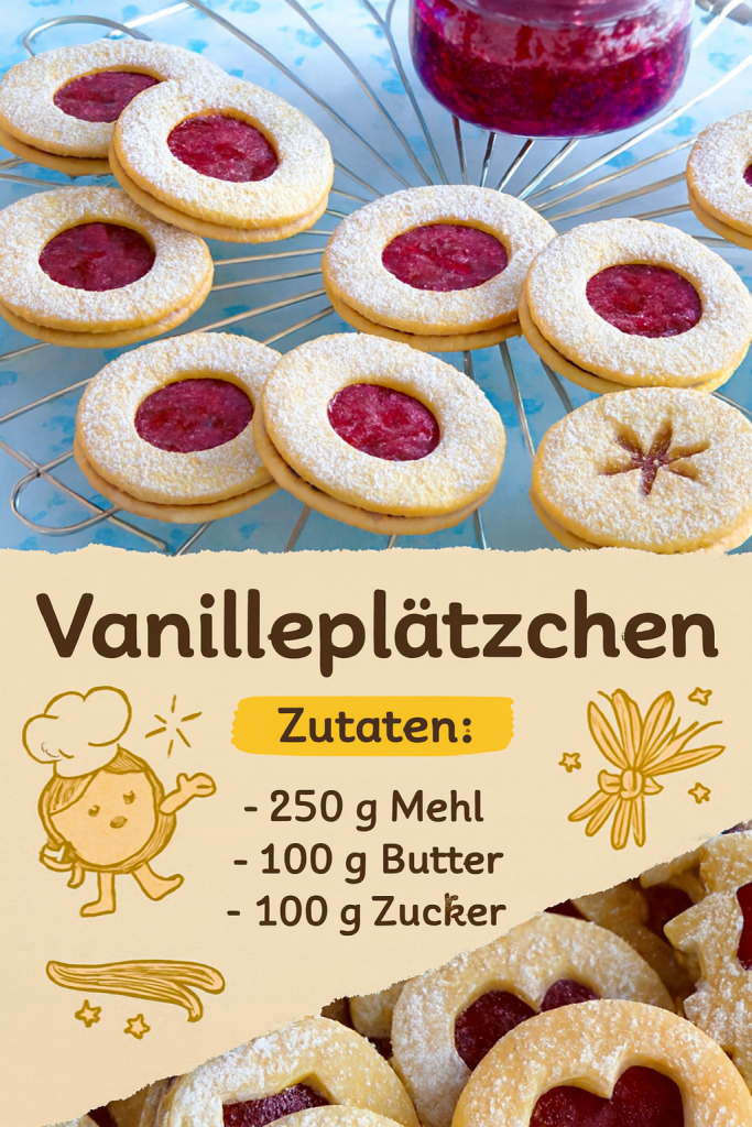 Plätzchen gehören zu den beliebtesten Süßspeisen, besonders in der kalten Jahreszeit, wenn gemütliche Stunden in der Küche verbringbar sind und der Duft von frisch gebackenen Köstlichkeiten das Zuhause erfüllt. Dieses Rezept zeigt, wie man zarte, aromatische Plätzchen mit einer fruchtigen Füllung aus Himbeermarmelade zubereitet. Es handelt sich um eine klassische Kombination aus knusprigem Mürbeteig und süßer Marmelade, die sowohl optisch als auch geschmacklich überzeugt. Durch die Möglichkeit, kleine Motive in die Plätzchen zu stanzen, wird jeder Keks zu einem kleinen Kunstwerk.