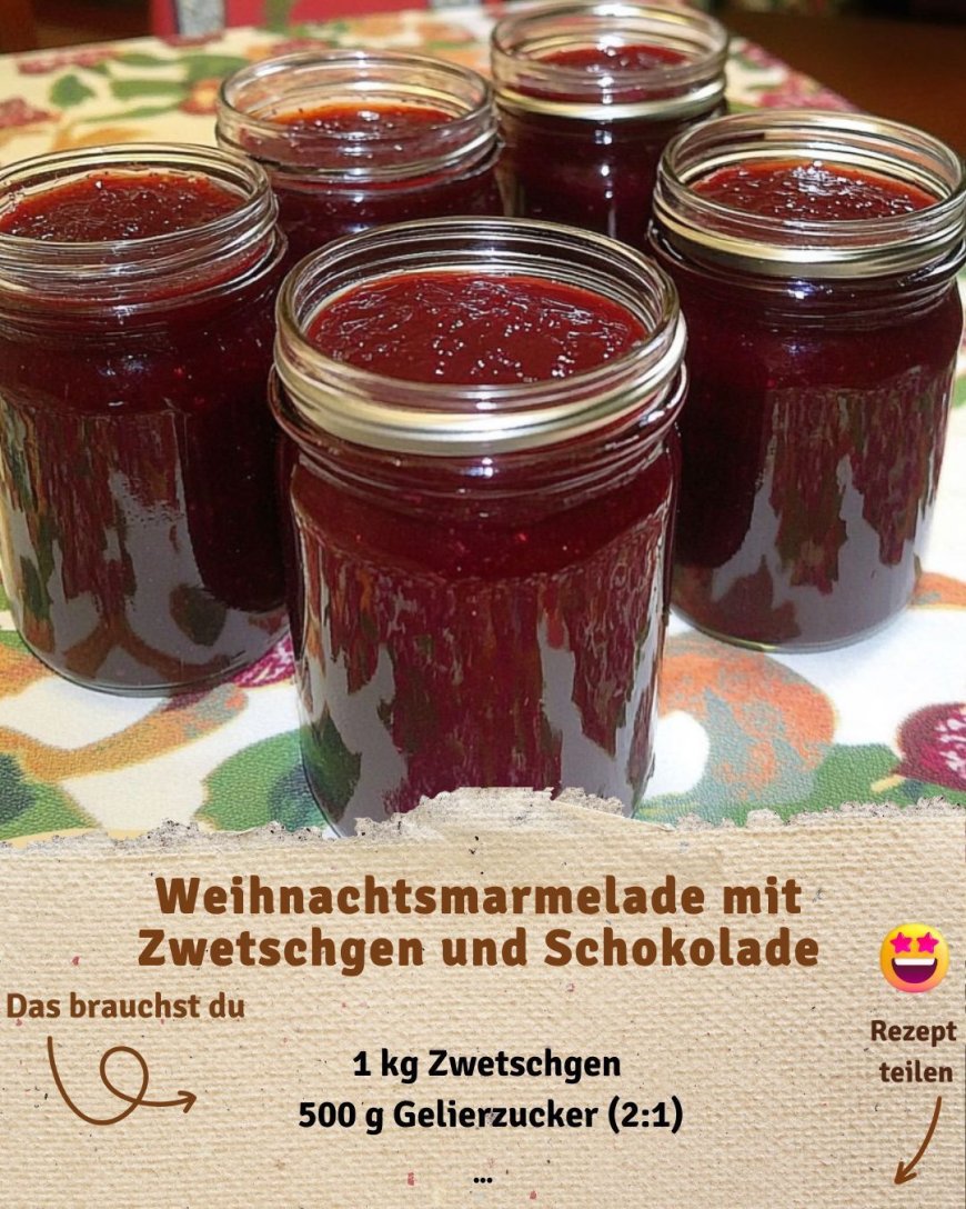 Wenn die ersten Flocken den Boden leicht bedecken und die Küche nach zimtigen Aromen und frisch Gebackenem duftet, gehören besondere Rezepte auf den Tisch. Dieses Rezept für Weihnachtsmarmelade mit Zwetschgen und Zartbitterschokolade fängt genau dieses Gefühl ein: eine Kombination aus fruchtiger Tiefe, dezenter Süße und wärmenden Gewürzen, die an gemütliche Adventsabende erinnert.