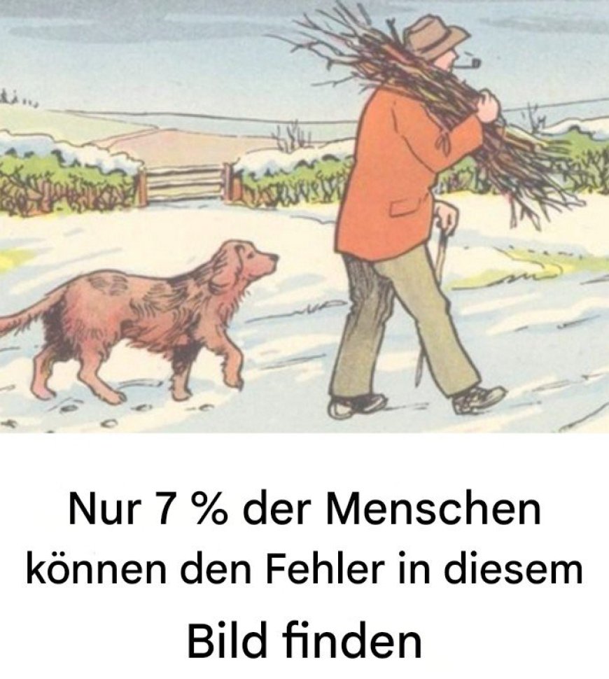 Auf den ersten Blick erscheint die Szene vollkommen gewöhnlich: Ein Mann geht mit seinem Hund durch eine verschneite Landschaft, die Umgebung wirkt ruhig und beinahe idyllisch. Doch genau in dieser scheinbar harmlosen Zeichnung verbirgt sich ein Fehler, ein kleines Detail, das nicht in das Gesamtbild passt. Viele Menschen übersehen dieses Detail, da ihr Blick oft zu schnell über das Bild gleitet und sie sich nicht die Zeit nehmen, aufmerksam zu beobachten.