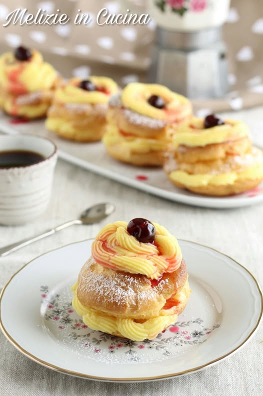 Die Heißluftfritteusen-Variante der Zeppole di San Giuseppe vereint Tradition und moderne Zubereitung: Sie bleibt leicht, luftig und geschmackvoll, ohne auf das typische, festliche Erlebnis zu verzichten. Mit ihrer cremigen Vanillefüllung, den fruchtigen Kirschen und dem zarten Puderzucker bieten sie ein visuelles und geschmackliches Highlight für jeden Vatertag oder jede festliche Gelegenheit.