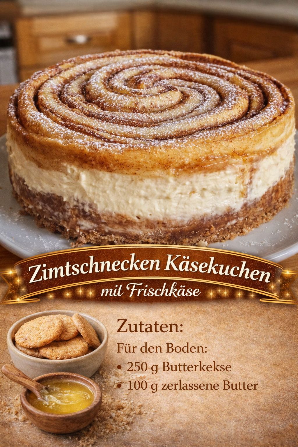 Zimtschnecken-Käsekuchen mit 750 g Frischkäse – in nur 30 Minuten zubereitet